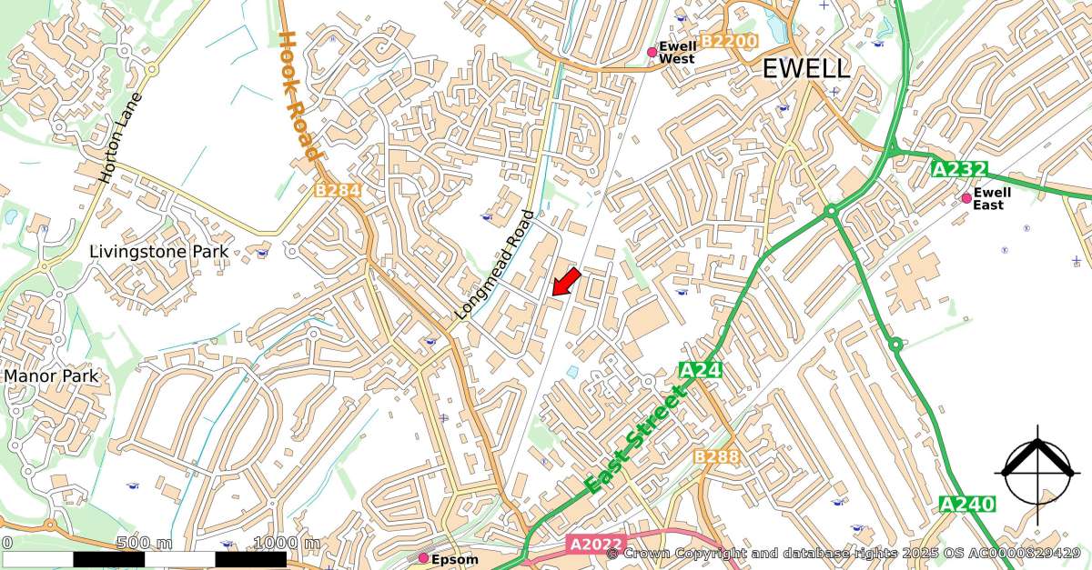 Epsom is located approximately 15 miles southwest of central London on the A24 which provides fast access to the M25 (J9) approximately 5 miles and the A3 at Tolworth at approximately 4 miles.