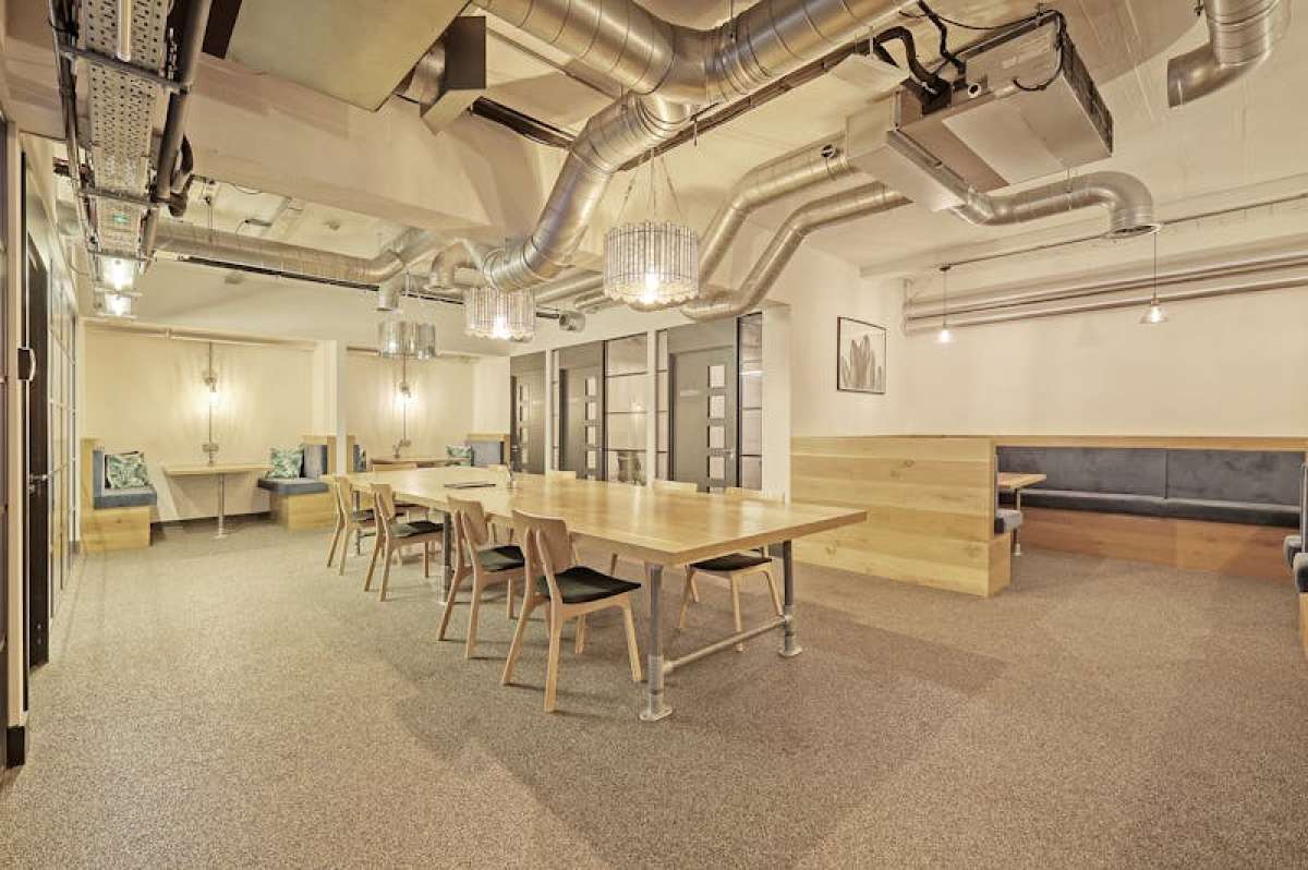 Extensive breakout area with phone booth and meeting booths
