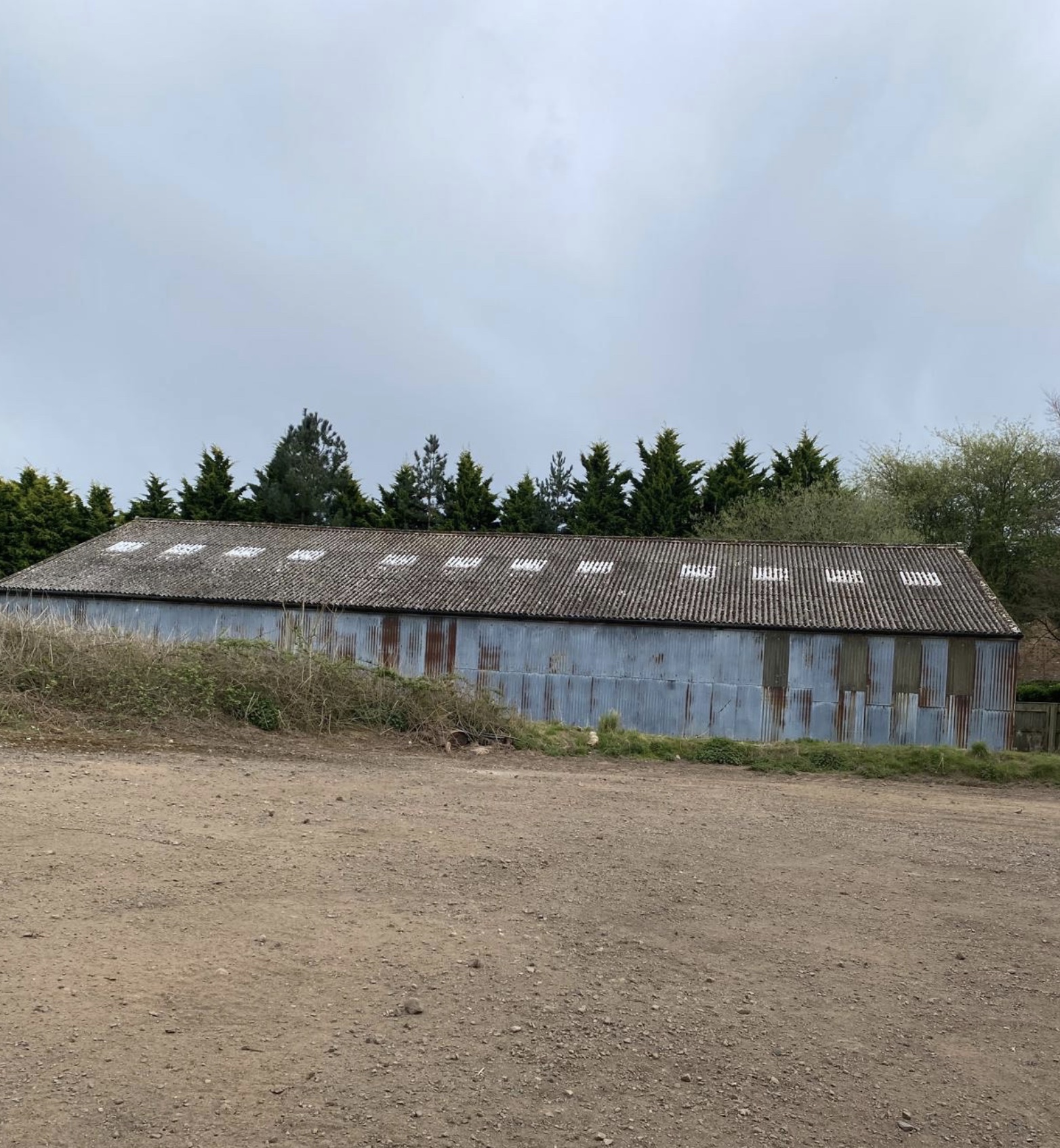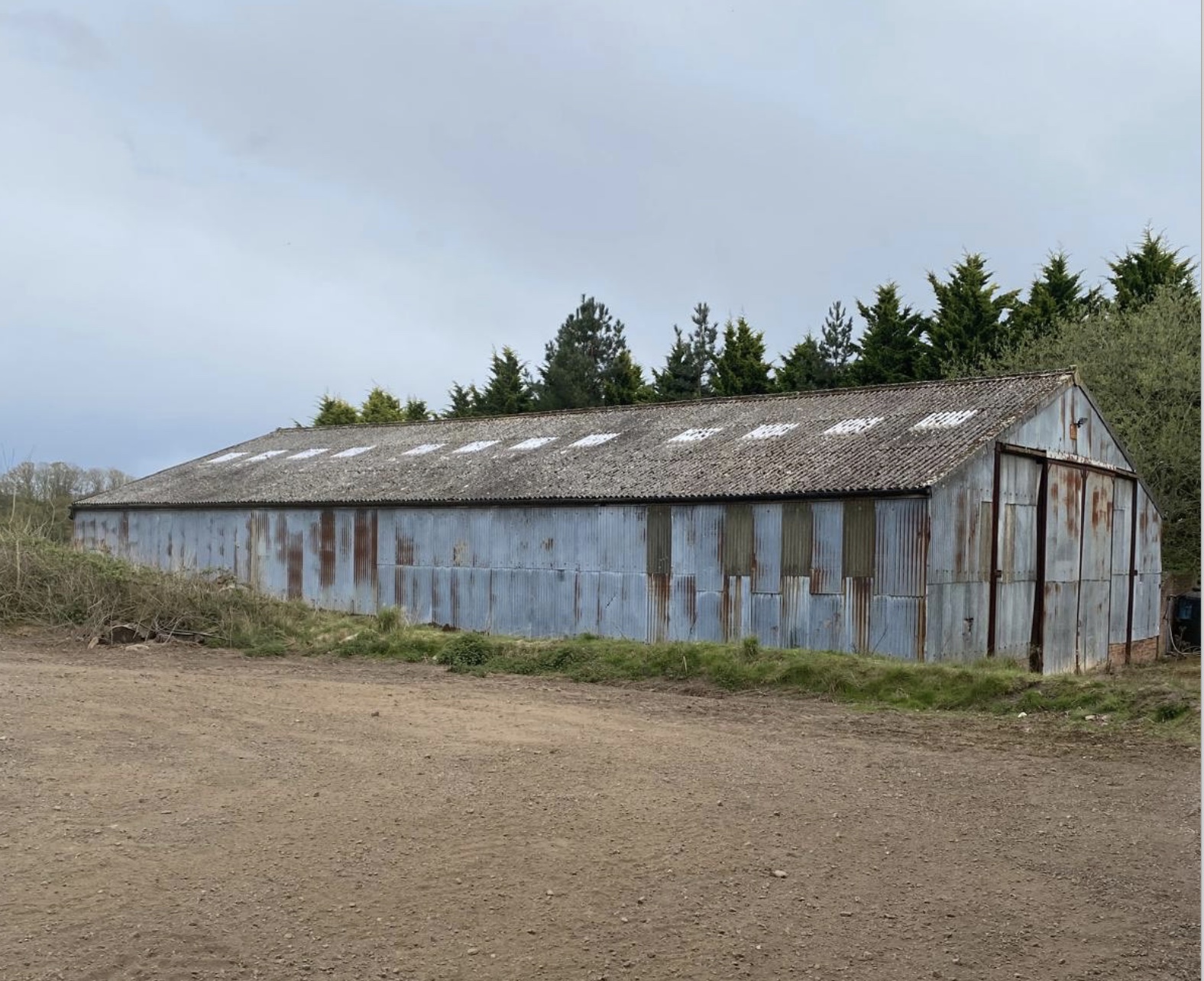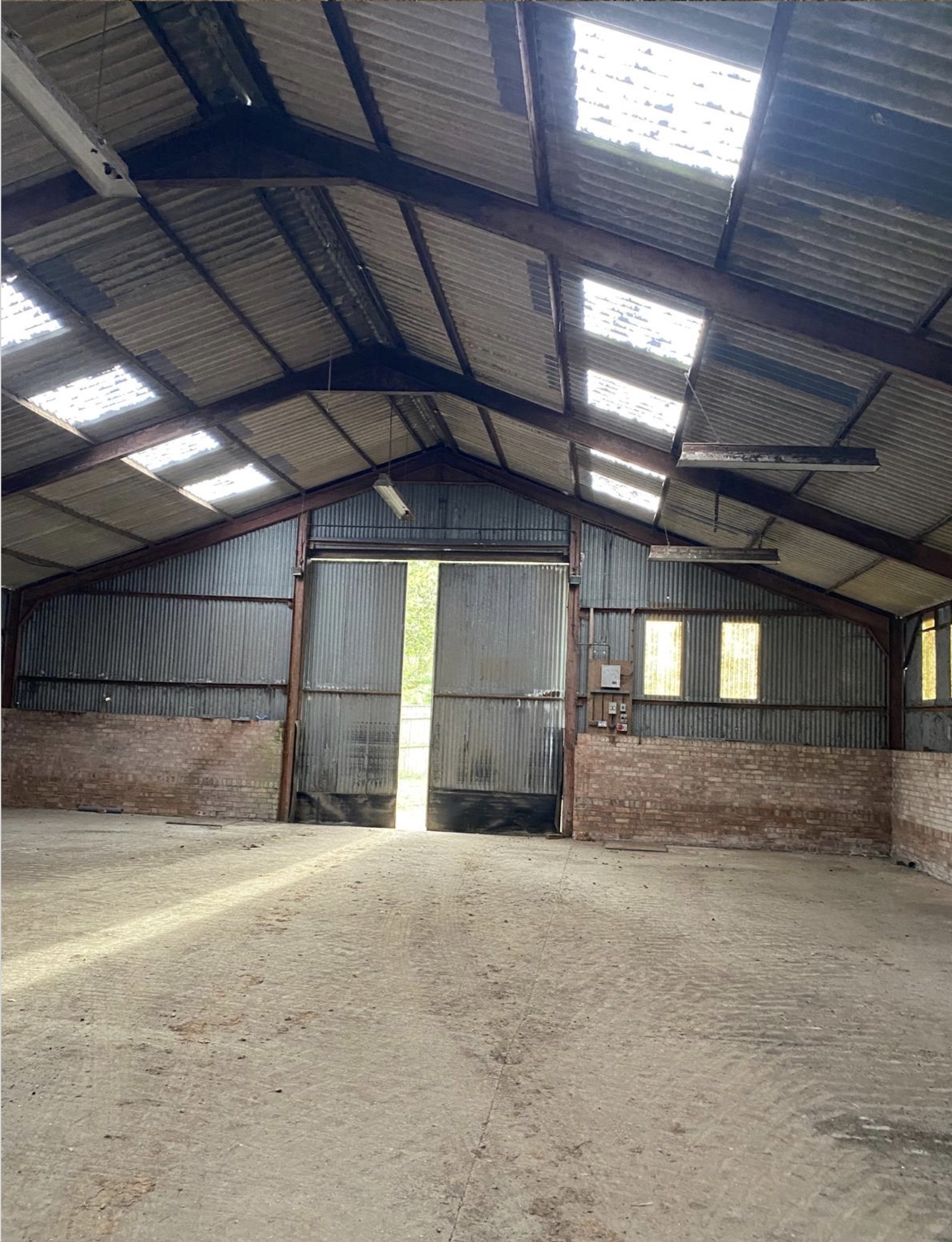 <p>Previously a grain store , with a concrete floor, 7 ft brick walls with corrugated tin sheet sides , the roof is corrugated concrete sheets .</p>
