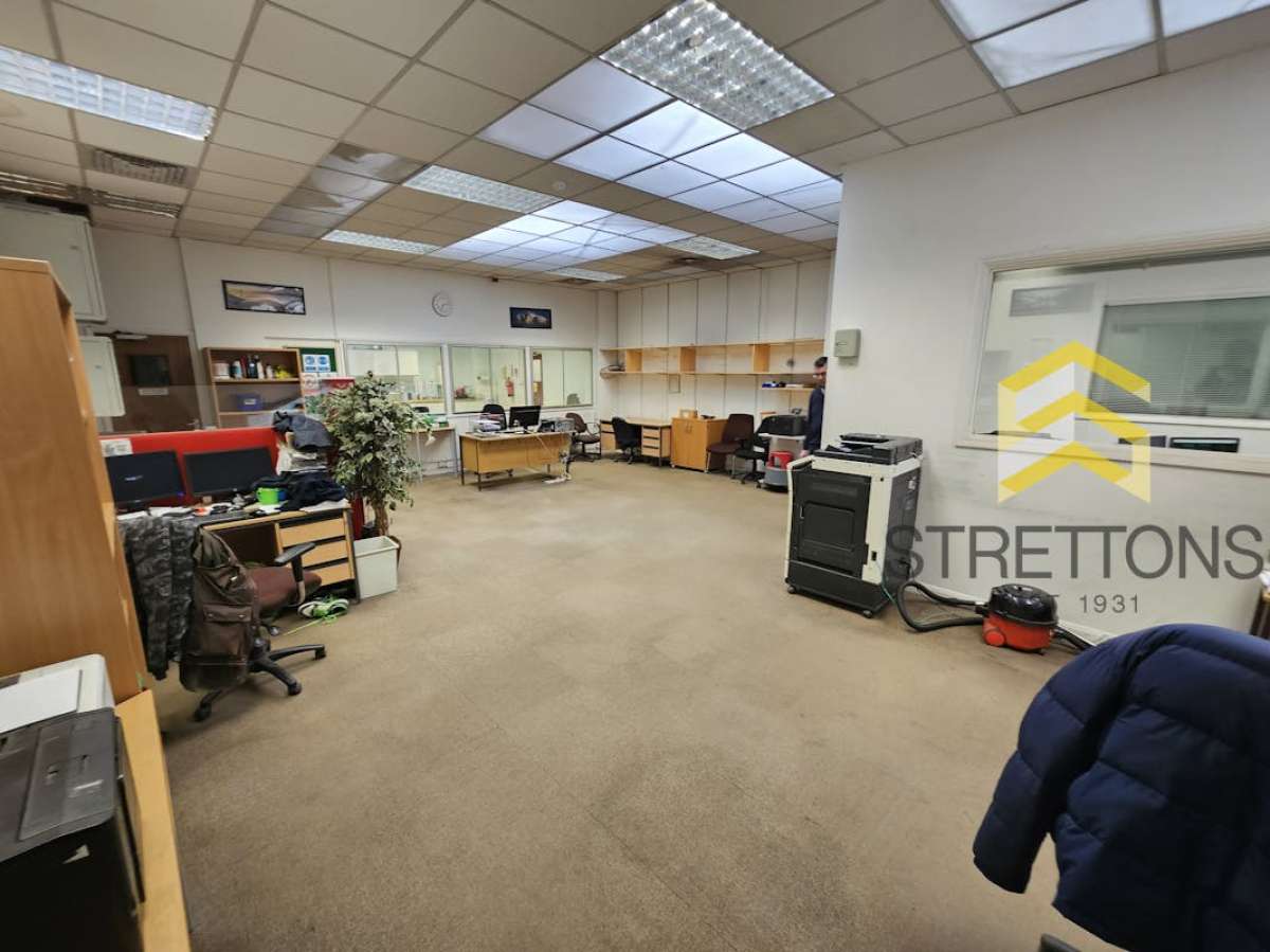 The Property Is A Mid-terrace Steel Portal Frame Warehouse Unit With A Profile-clad Roof And Brick Elevations. There Is A Steel Frame Mezzanine With Direct Loading From The Electric Roller-shutter Door And A Suspended Ceiling Below With Incorporated Lighting Units. There Are W/c’s And Office Space On The Ground Floor Whilst The Mezzanine Level Provides Open Storage Space.