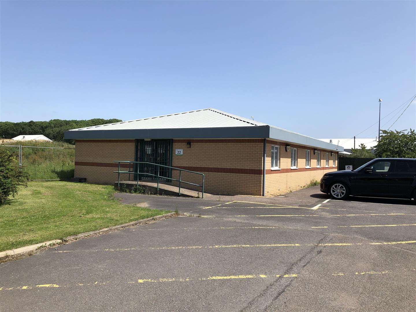 Parking is located to the front of the offices, with ample space for staff and visitors
