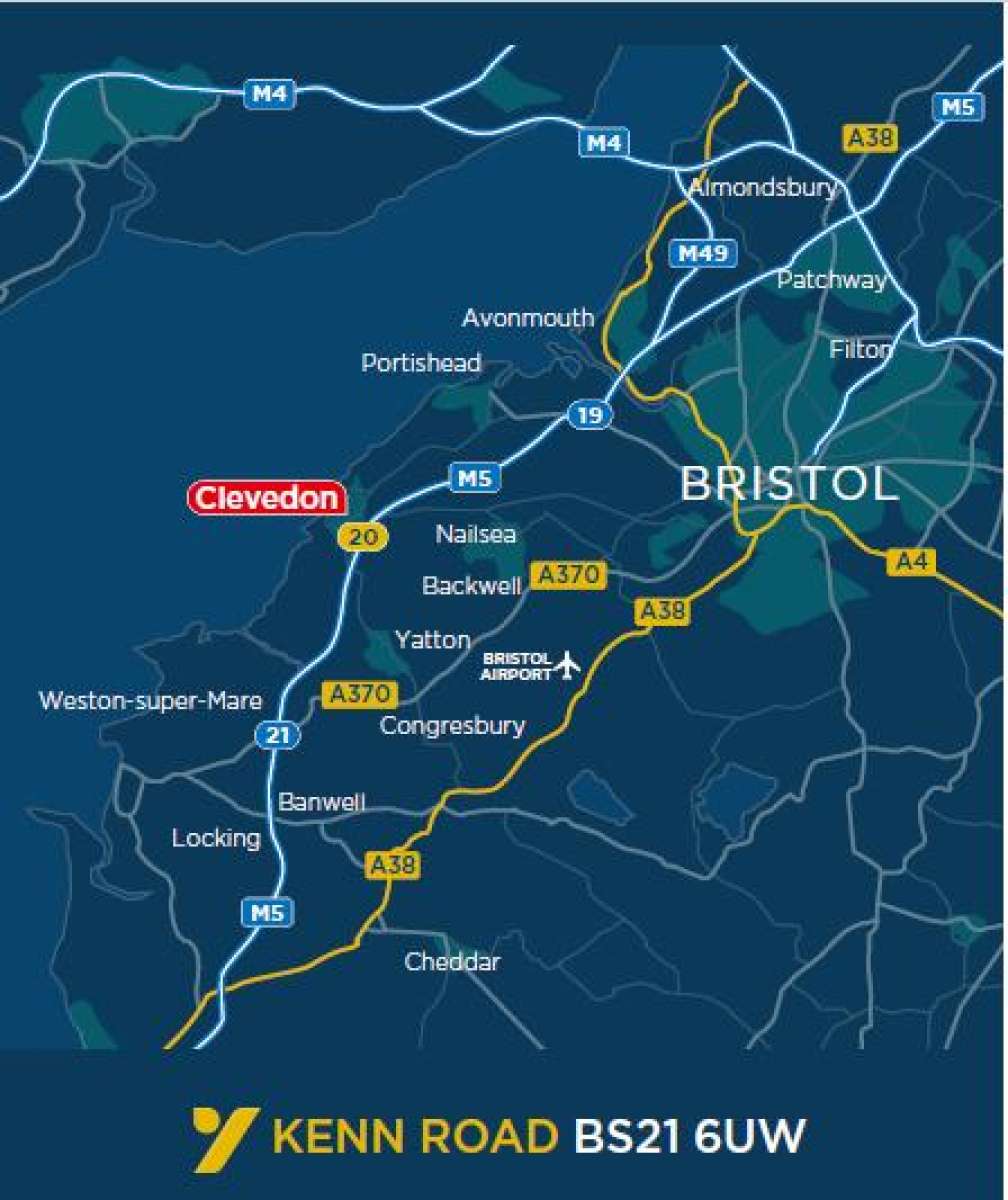 Yeo Bank Business Park is situated in an established business park location, on the outskirst of Clevedon. Yeo Bank Business Park benefits from its own private access onto Kenn Road in Clevedon, south of the town centre and close to junction 20 of the M5 Motorway, which provides swift access to Bristol, 10 miles to the north and to the south west.