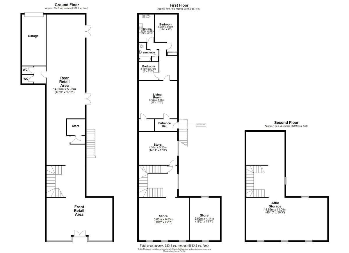 The Retail Unit comprises of a sales area, kitchen, 3 stores and WC's on the ground floor. The first and second floors comprises of 2 stores and a showroom.