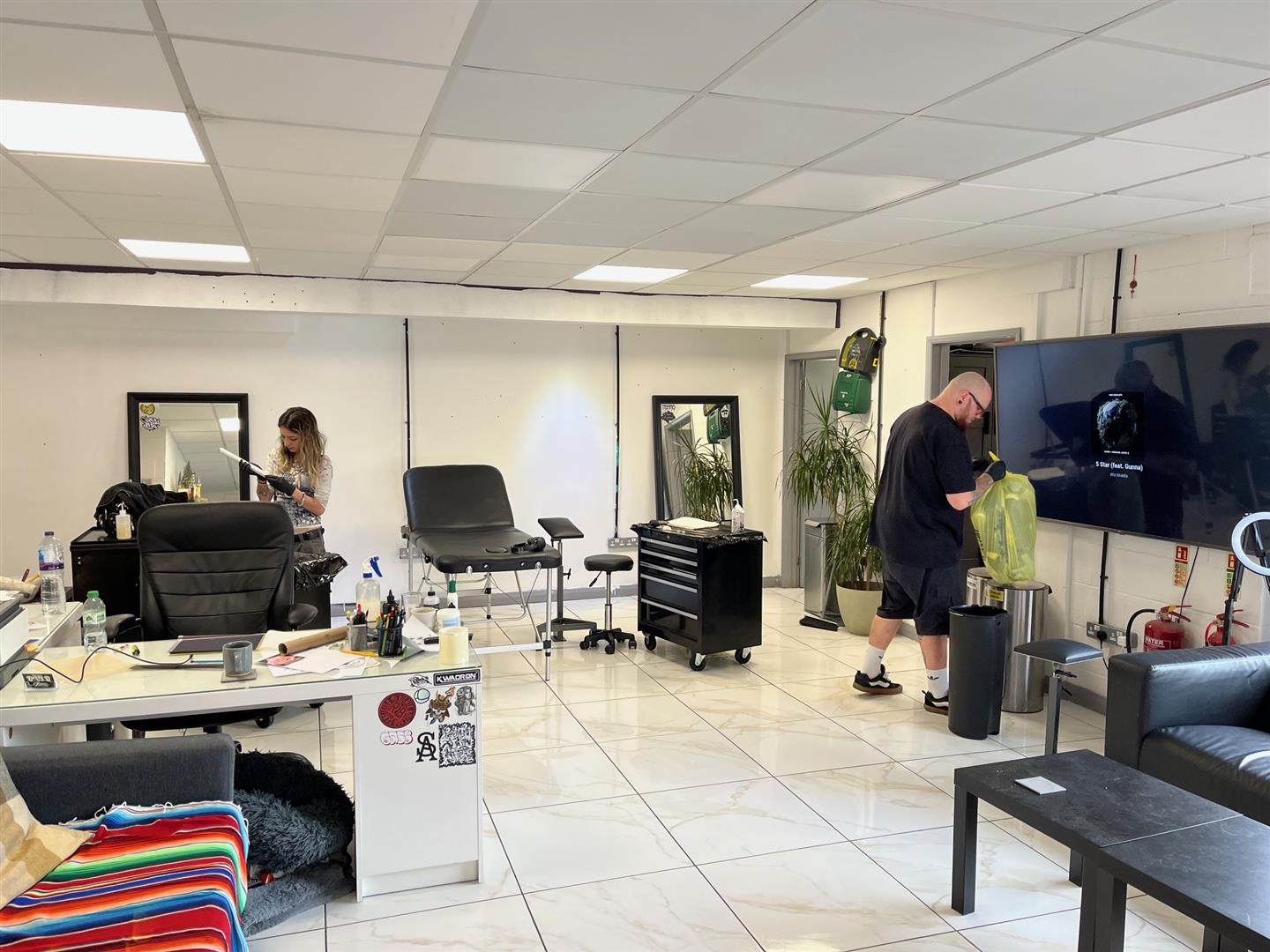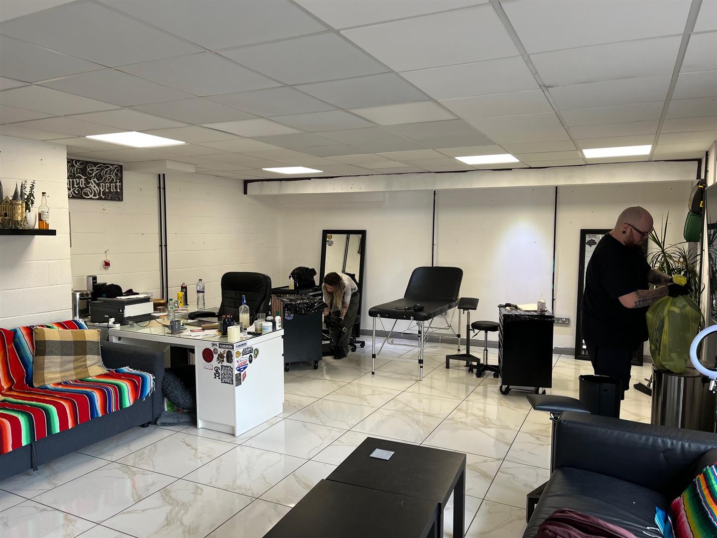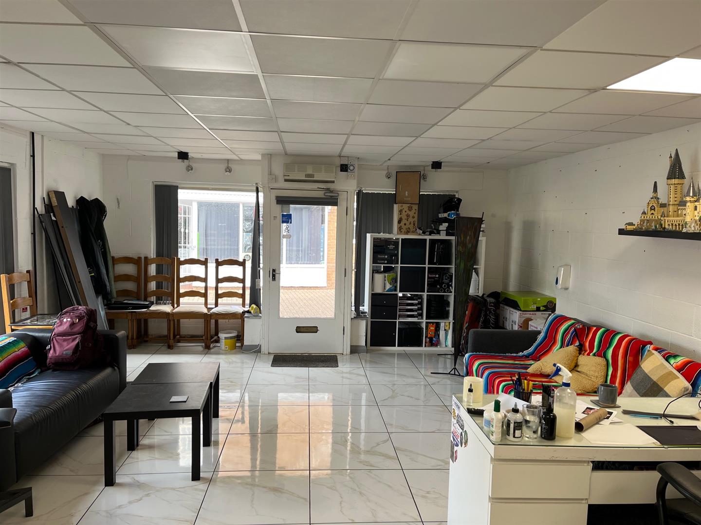 Tiled floor, painted walls and suspended ceiling