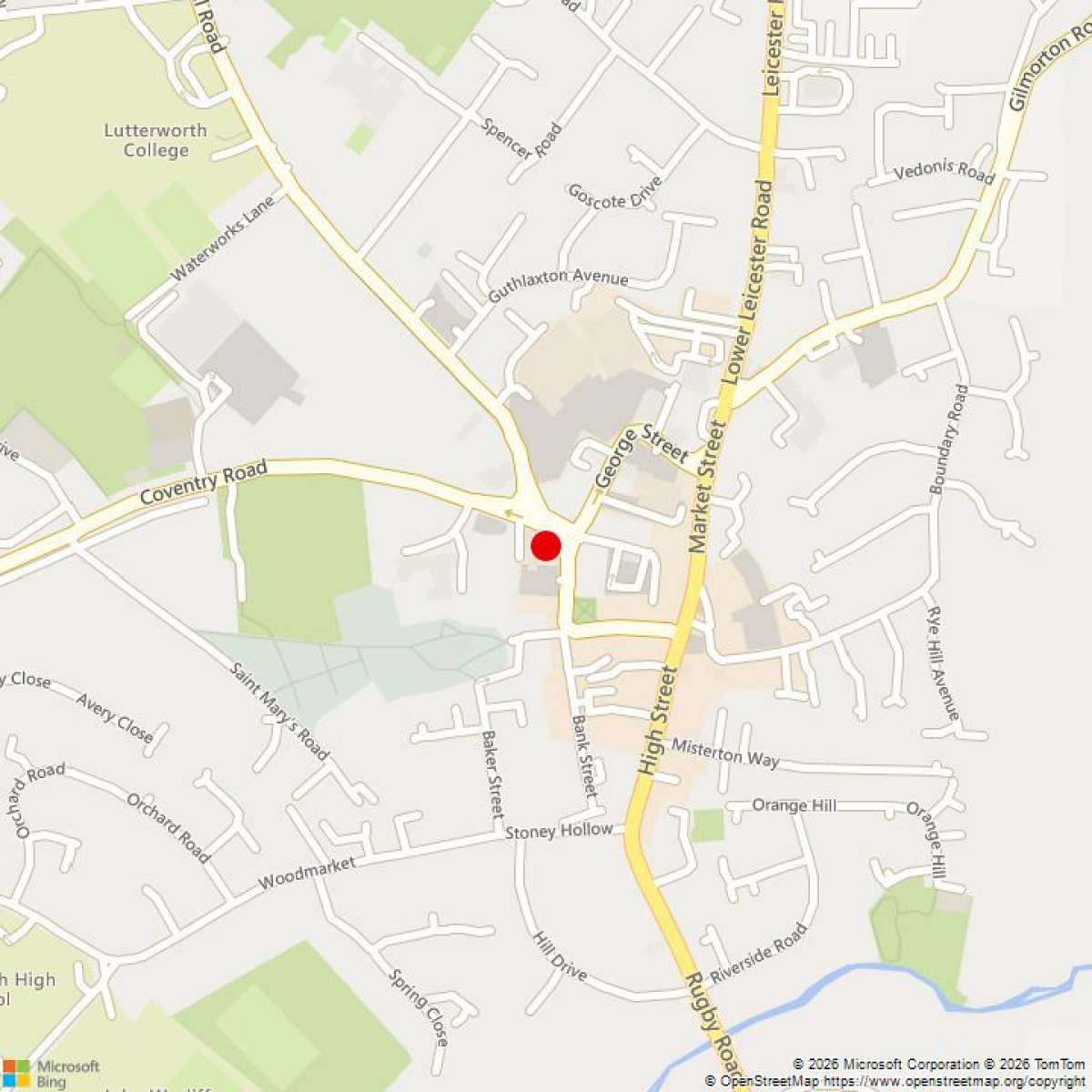 12 Weston Court is located immediately on George Street a main thoroughfare in Lutterworth Town Centre situated a few meters along from the town's Post Office and within close proximity to the town's principal public car parks and supermarkets. The property has a highly visible double frontage and is centrally located to all of the towns amenities. The property is situated approximately 1 mile from Junction 20 of the M1 motorway and Magna Park. The properties central location to other rural towns and villages provides a potentially strong catchment area.