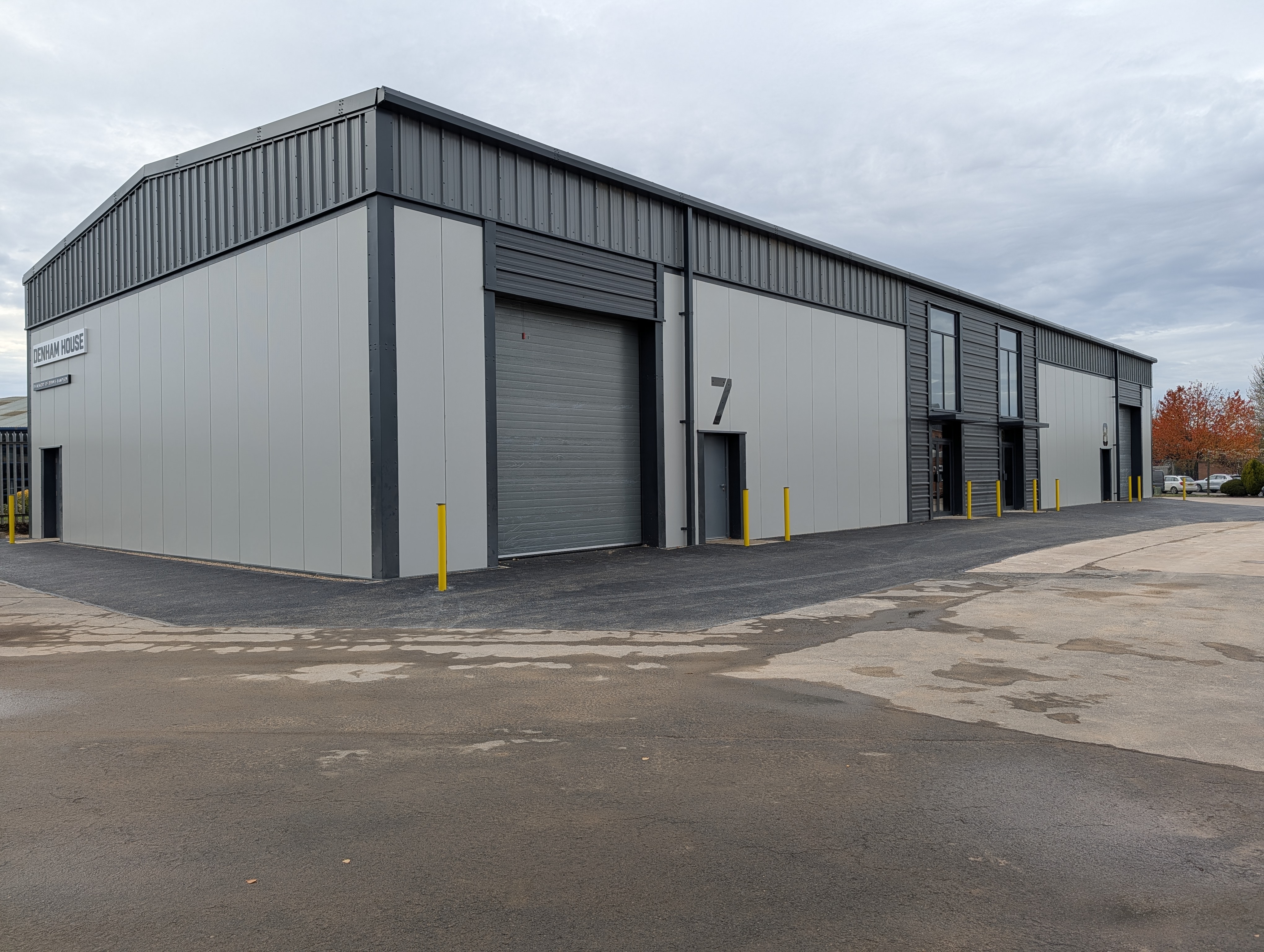 Construction is complete on the development of our existing site - Denham Business Park to create brand new high specification industrial/trade counter units of steel portal frame construction with trapezoidal wall and roof cladding, finished with plastic coated metal trims and flashings.