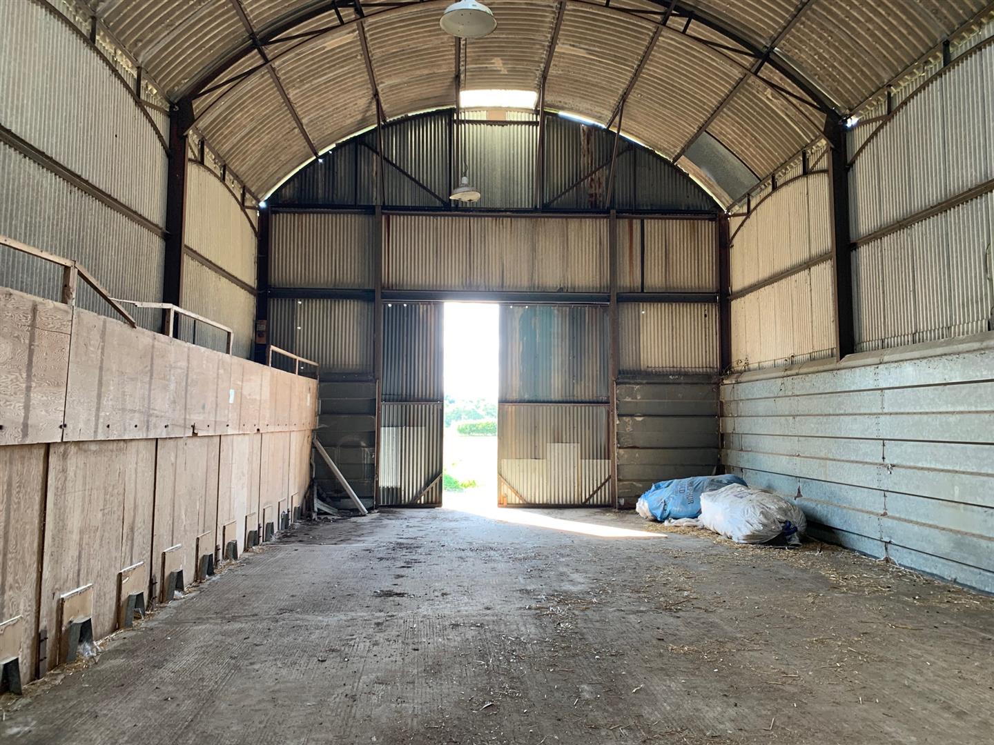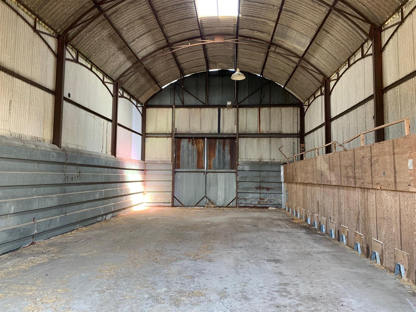 Comprising a detached barn with large sliding doors at either end of the building, measuring circa 2500 sq ft, ideal for basic storage, the building has undergone roof repairs and is dry with concrete hard flooring internally.