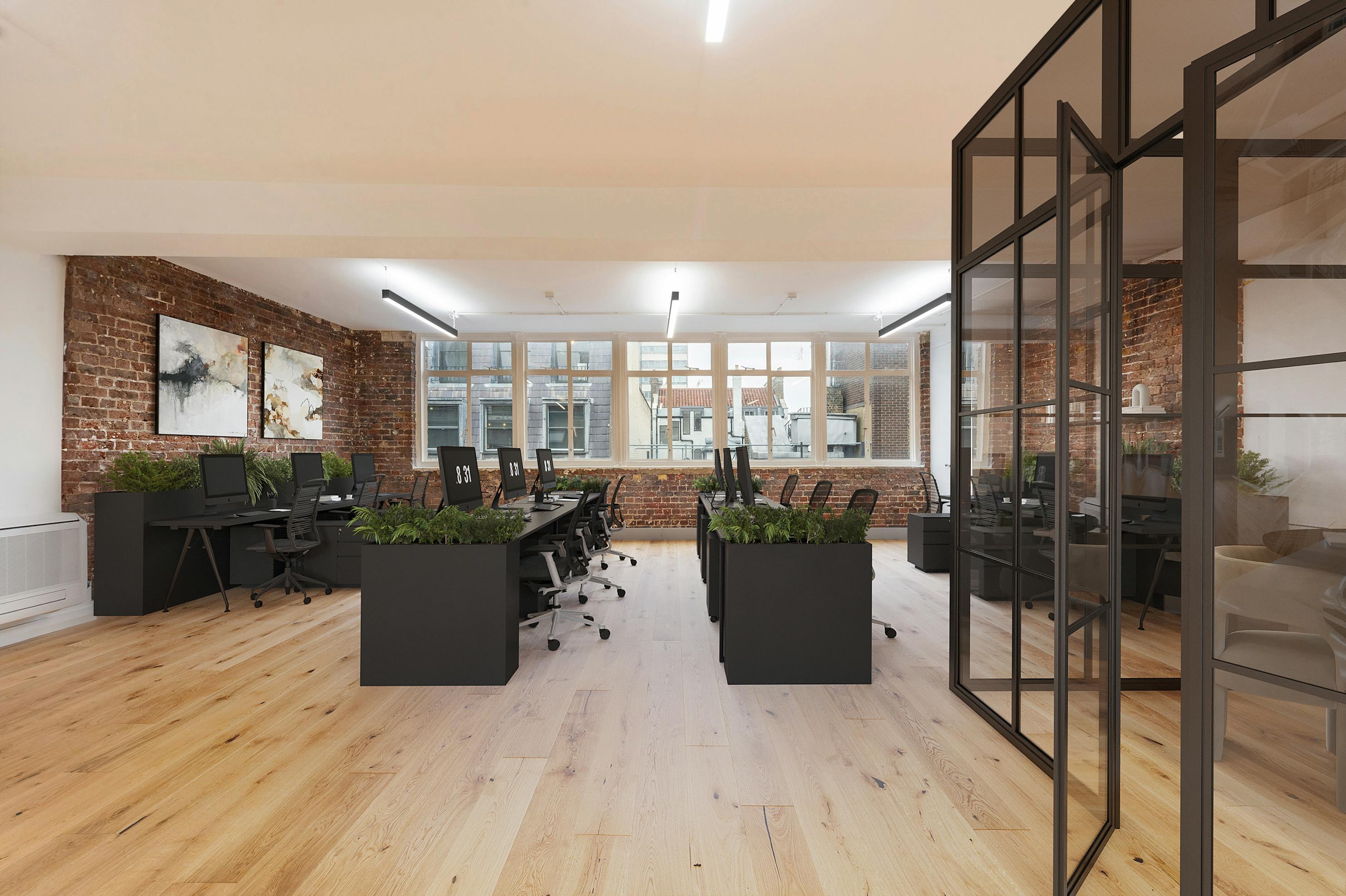 Welcome to the fourth floor at 16-17 Little Portland Street, nestled within a charming converted former warehouse in the heart of Fitzrovia. This workspace emanates industrial character, igniting creativity and innovation for its occupants. Fully renovated with meticulous attention to detail, the office retains the raw charm of exposed red brickwork as a distinctive feature. The space is thoughtfully fitted with a brand-new demised kitchenette and restroom, complemented by new air-conditioning for comfort. Step into a workspace that seamlessly blends historic charm with contemporary functionality, offering an inspiring environment for your team to thrive in the heart of Fitzrovia.