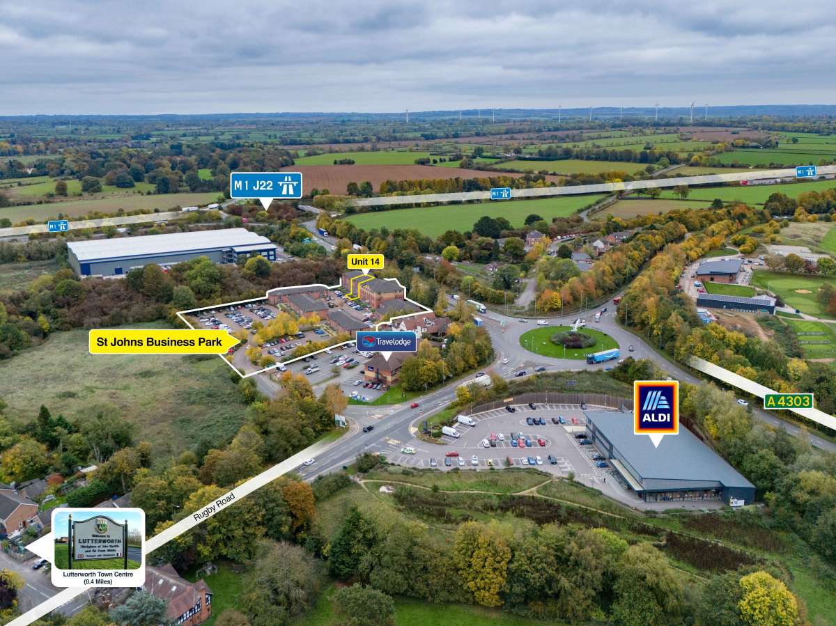 The property is situated on St Johns Business Park, Lutterworth, an attractive modern office development with landscaped surroundings and allocated parking. The park is a short walking distance to Lutterworth Town Centre with other nearby amenities including Aldi, Travelodge and Elms public house.