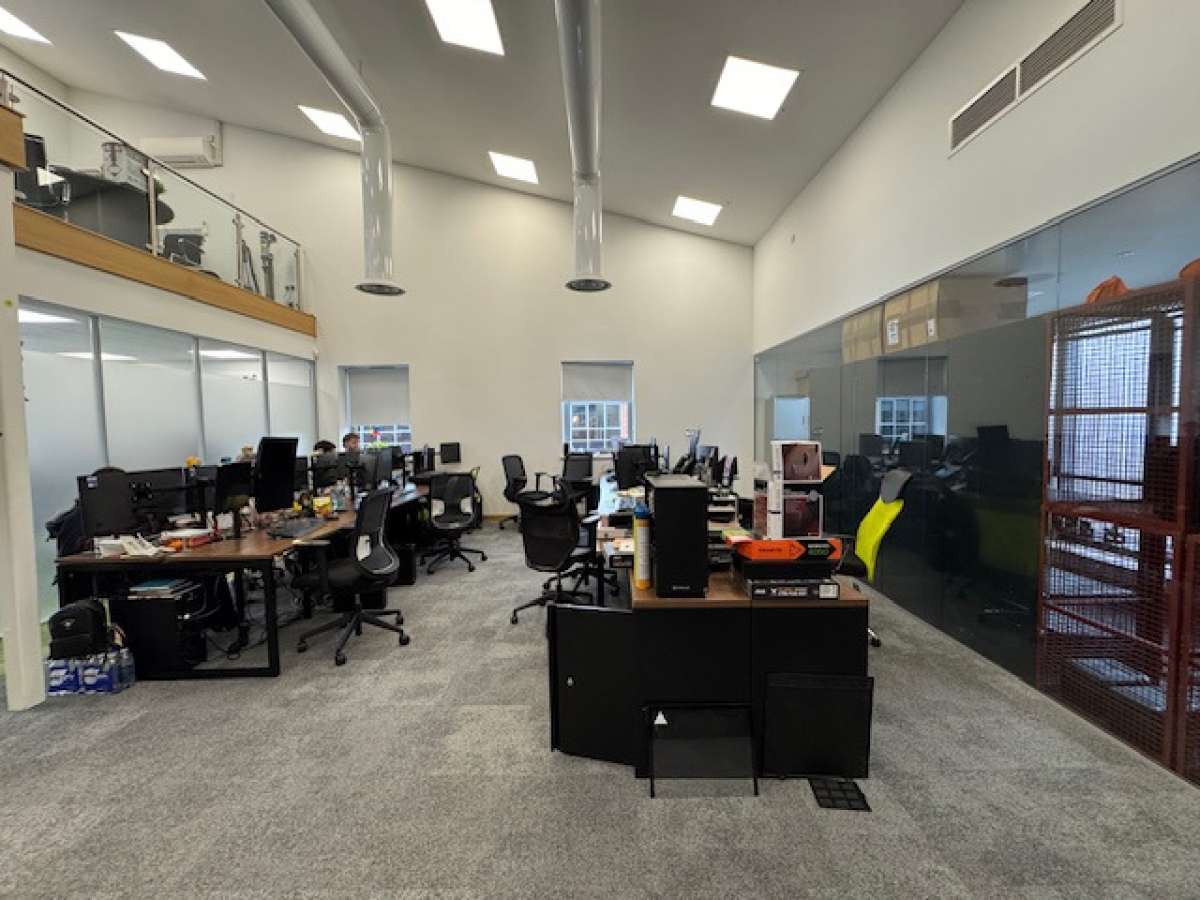 Open plan accommodation with feature mezzanine, LED lighting, comfort cooling, intercom entry system, and raised floors.