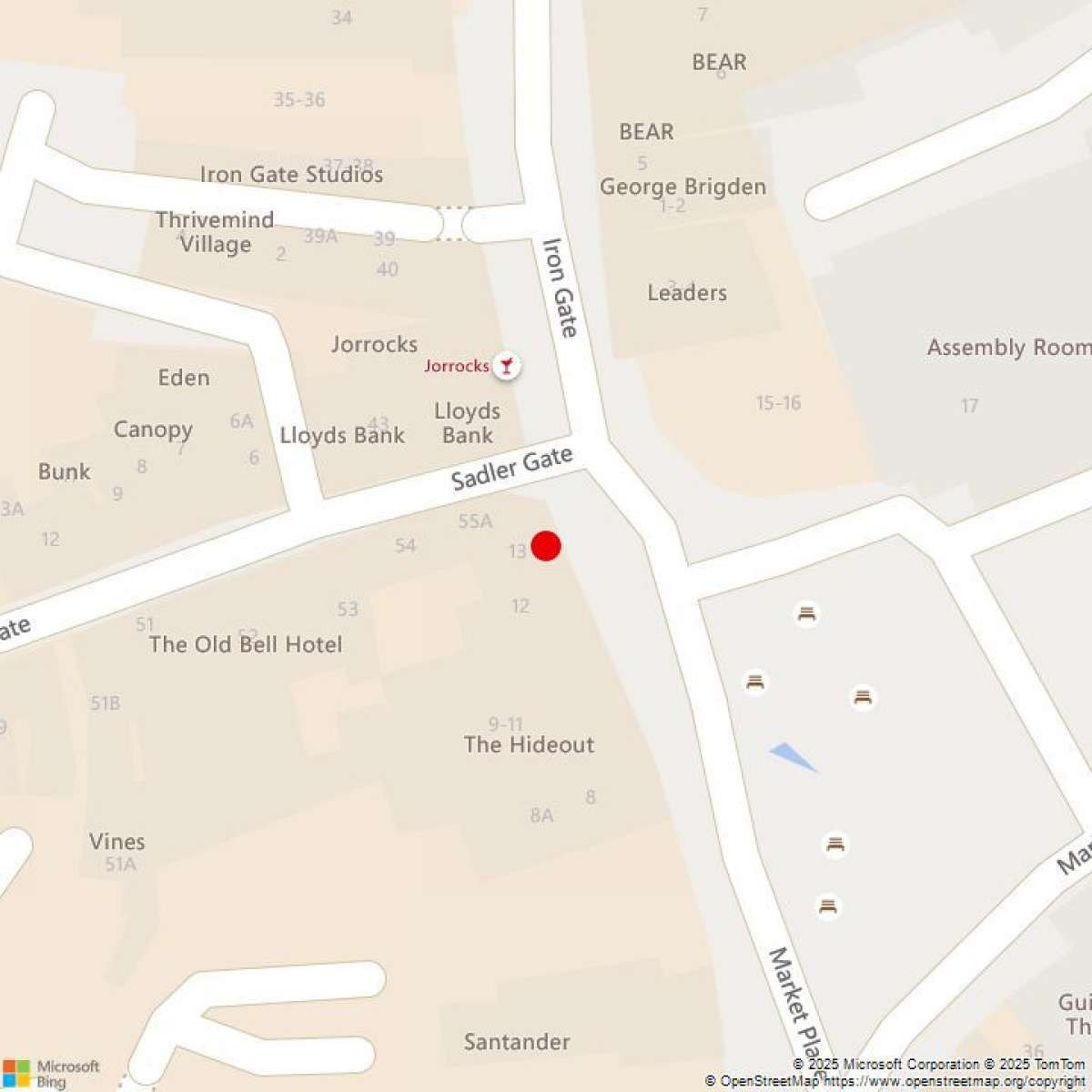 The property is prominently located on the west side of Market Place at the junction with Sadler Gate. Nearby occupiers include Nandos, BEAR and Betfred.